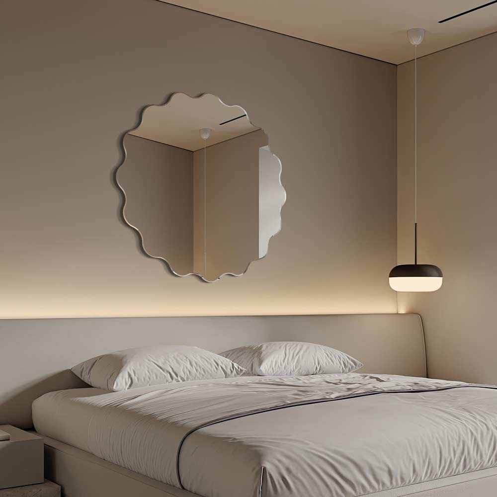 …a także czarujące, zmysłowe i po prostu piękne.. Lustro faliste Holly to forma, która żyje, płynie i łamie schematy. Jego falowany obrys sprawia, że zamiast geometrycznej oczywistości otrzymujesz miękki rytm światła i szkła, który naturalnie rozlewa się po ścianie. To lustro o wyjątkowej, falistej formie: wyrazistej, ale harmonijnej. Idealne, gdy chcesz dodać wnętrzu lekkości, subtelnej elegancji i charakteru. Zachwyca estetyką, pozostając w pełni funkcjonalnym – oferuje czyste, precyzyjne odbicie i ponadczasowy styl.