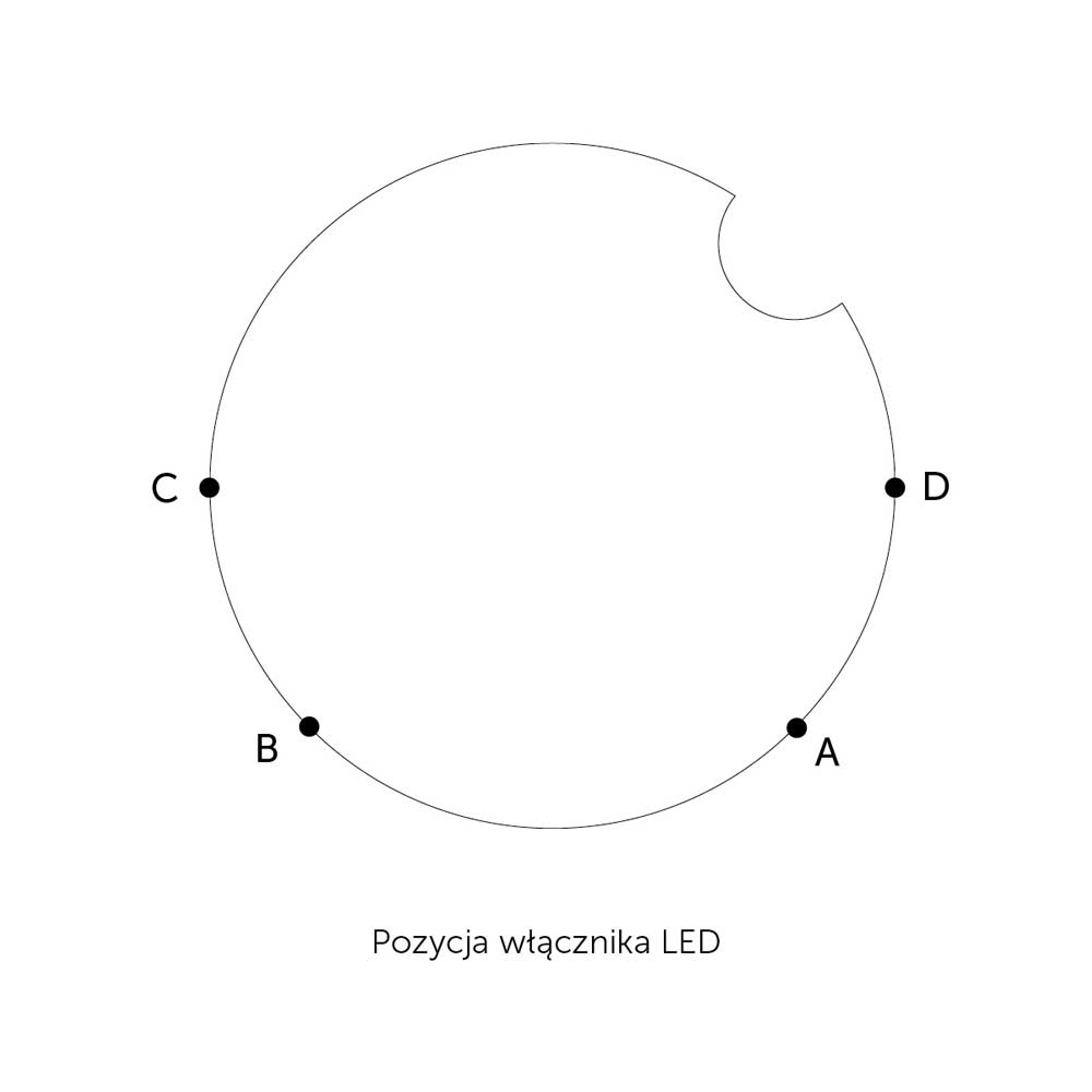Opcję z włącznikiem możesz wybrać konfigurując lustro przed dodaniem do koszyka. Decydując się na ten wariant zwróć uwagę na wybór umiejscowienia włącznika na lustrze – patrz rysunek w galerii zdjęć powyżej.