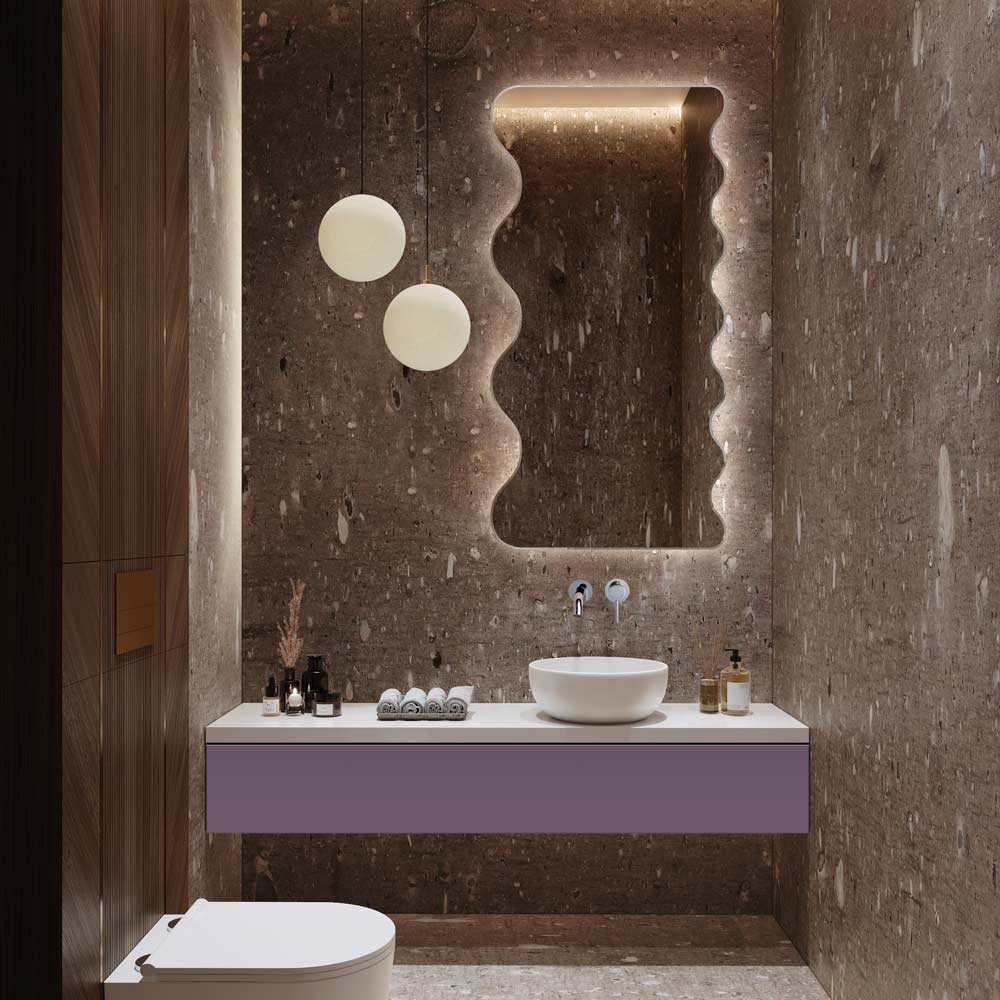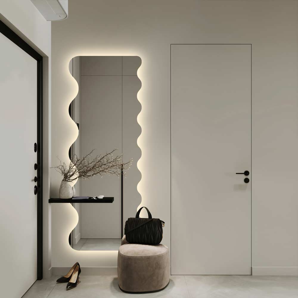 Lustro Rumba LED o wyjątkowym falowanym kształcie, przywodzi na myśl taneczny ruch i rytmiczne falowanie niczym w kubańskiej rumbie. Lustro falowane Rumba ożywi każde wnętrze, dodając mu unikalnego sznytu. Wpisuje się w obecne trendy wnętrzarskie. Jego falująca forma, to modny akcent dekoracyjny do każdego wnętrza. Pasuje do każdego pomieszczenia: doskonale sprawdzi się w nowoczesnej aranżacji łazienki, przedpokoju, sypialni, a nawet salonu. Jest subtelnym źródłem nastrojowego światła. Wbudowane oświetlenie LED z tyłu lustra podkreśla jego unikalny kształt. Dostępne w wielu rozmiarach. Można również zamówić na wymiar.