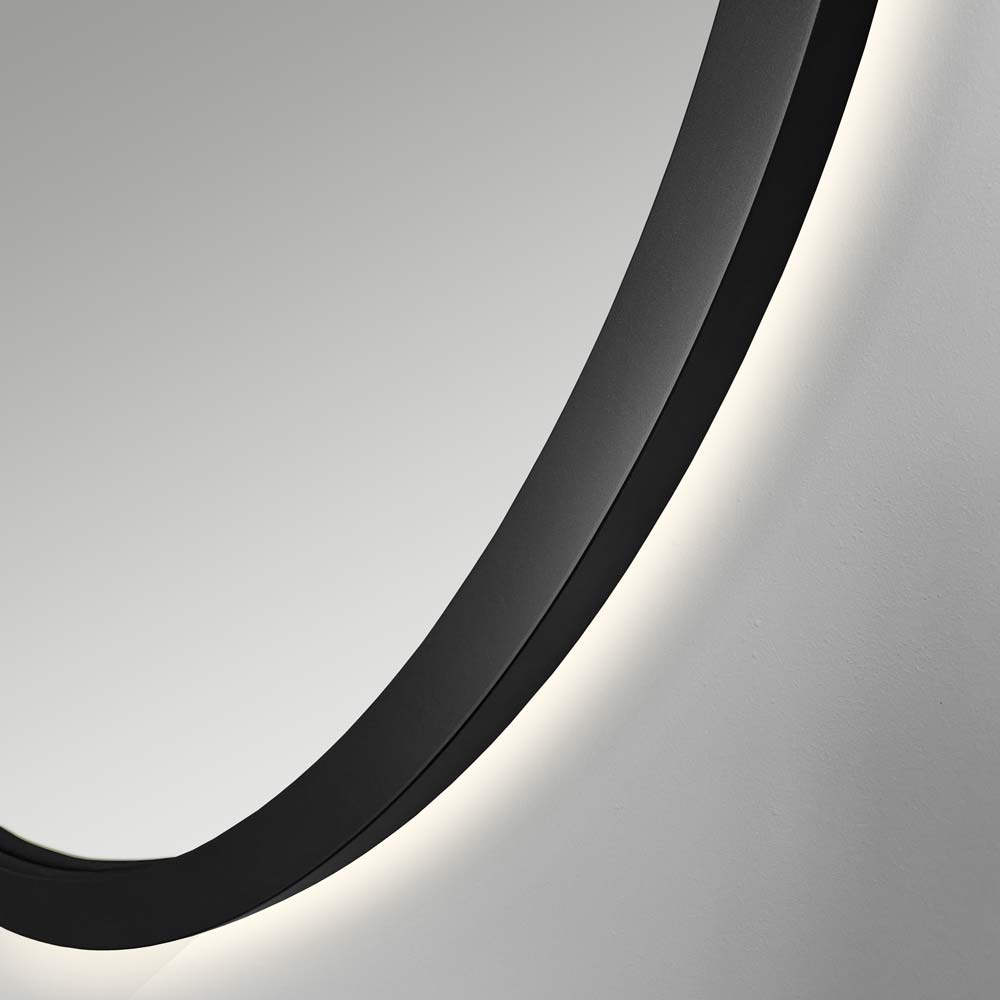 Okrągłe lustro łazienkowe podświetlone od tyłu, w wąskiej czarnej ramce. Idealne do wnętrza w stylu nowoczesnym, skandynawskim czy industrialnym. Piękna dekoracja salonu, sypialni czy przedpokoju, ale nadaje się również do łazienki. Lustro podświetlane Scandi w czarnej ramie urzeka ponadczasową prostotą i jakością wykonania. Lustro podświetlone od tyłu wygląda wyjątkowo efektownie, jest już nie tylko przedmiotem użytkowym, ale również dekoracyjnym elementem aranżacji przestrzeni.